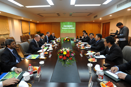 26日,賓主雙方進行了座談。任立榮向客人介紹了橫店集團的發(fā)展歷程、產業(yè)結構和發(fā)展方向。他說,橫店集團能不斷取得突破性發(fā)展,得益于注重人才培養(yǎng)和堅持科技創(chuàng)新,現電氣電子、醫(yī)藥化工和影視娛樂三大產業(yè)發(fā)展穩(wěn)健。他還表示橫店集團將全面加大投資力度,希望和飛利浦能共同加大對光源產業(yè)的投資,共同創(chuàng)造更加光明的未來。在聽取介紹和觀看《看橫店》專題片后,Rene說,橫店集團第一代領導者很有遠見,把理想變成了現實,管理模式很好,新管理團隊很有領導力,一切都“非常棒”。Rene還說,照明是飛利浦的三大支柱產業(yè)之一,橫店集團與飛利浦有相似的成長歷程,得邦電子則與飛利浦有相近的價值理念,這對雙方共同致力把光源產業(yè)做大非常有利。